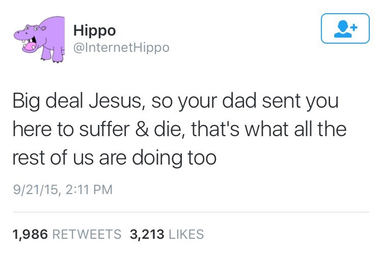 sharkroyalty Uncategorized June 24, 2017December 8, 2018 1 Minute flourescentbadolescent: I hate Twitter Share this: Share on X (Opens in new window) X Share on Facebook (Opens in new window) Facebook Like Loading... Related Published by sharkroyalty View all posts by sharkroyalty Published June 24, 2017December 8, 2018