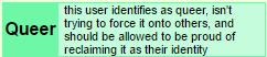{This user identifies as queer, isn’t trying to force it onto others, and should be allowed to be proud of reclaiming it as their identity}