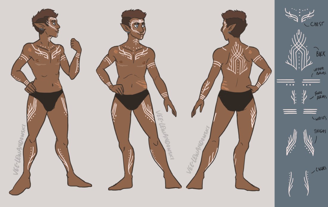 I always liked the idea of vallaslin extending to more than just the face so I gave him some fancy extra bits