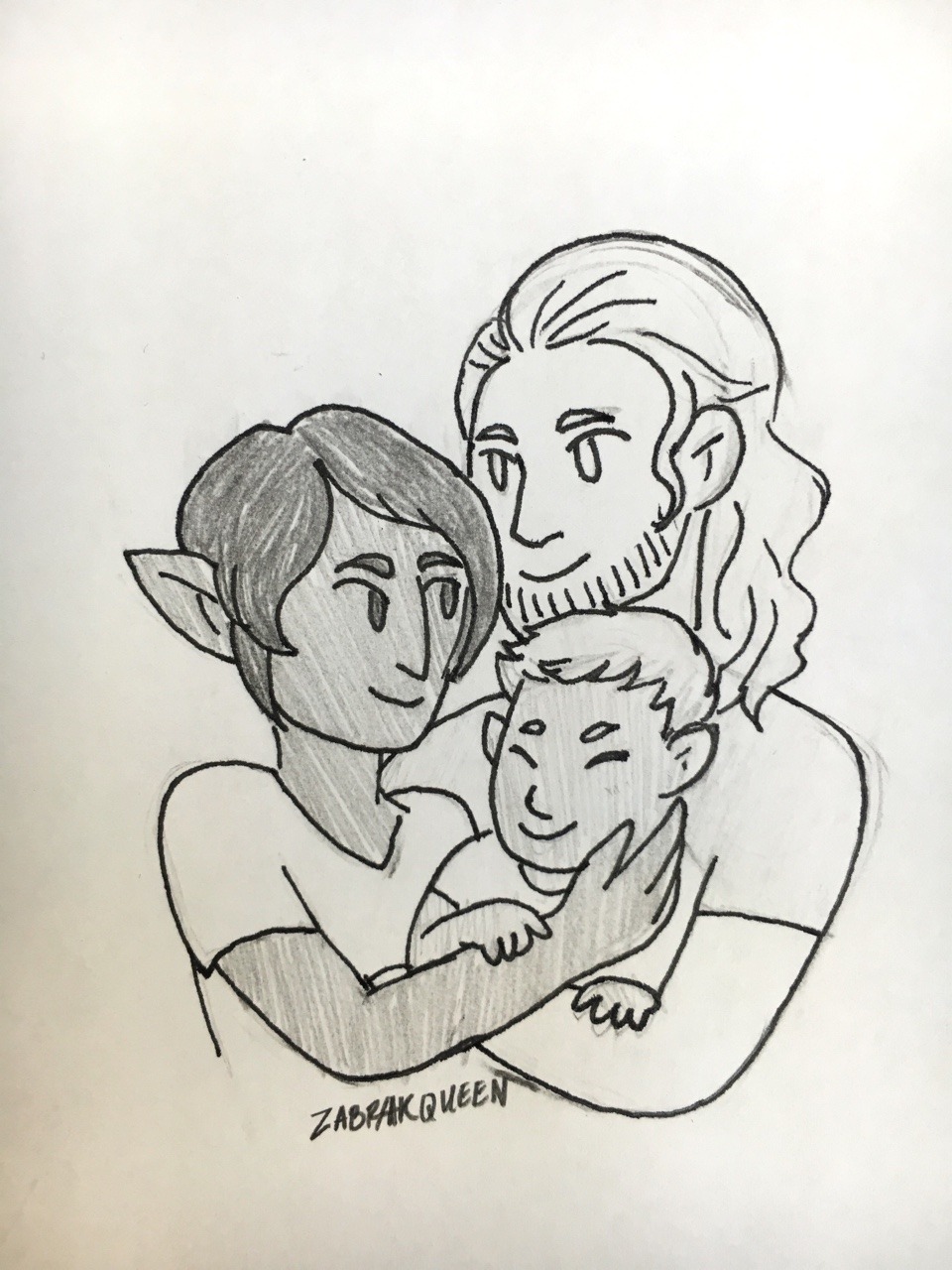 Super quick dopey doodle of Fiona and Maric and (bi-racial) bb Alistair for @grandenchanterfiona since they’ve had a rough day or so