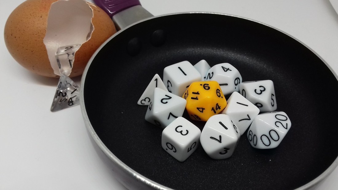 This is so silly, I love it. Especially those clear dice in the broken egg shell 😂